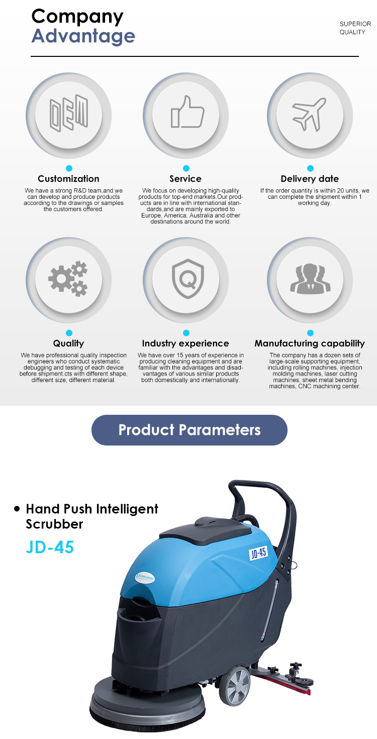 Al por mayor JD45 Fregadora de pisos comercial eléctrica de empuje manual Fábrica, KINGDOM está orientado al cliente, apoya la personalización de muestras, la producción y el desarrollo de dibujos y promete brindar soporte de servicio completo desde la producción hasta la posventa.